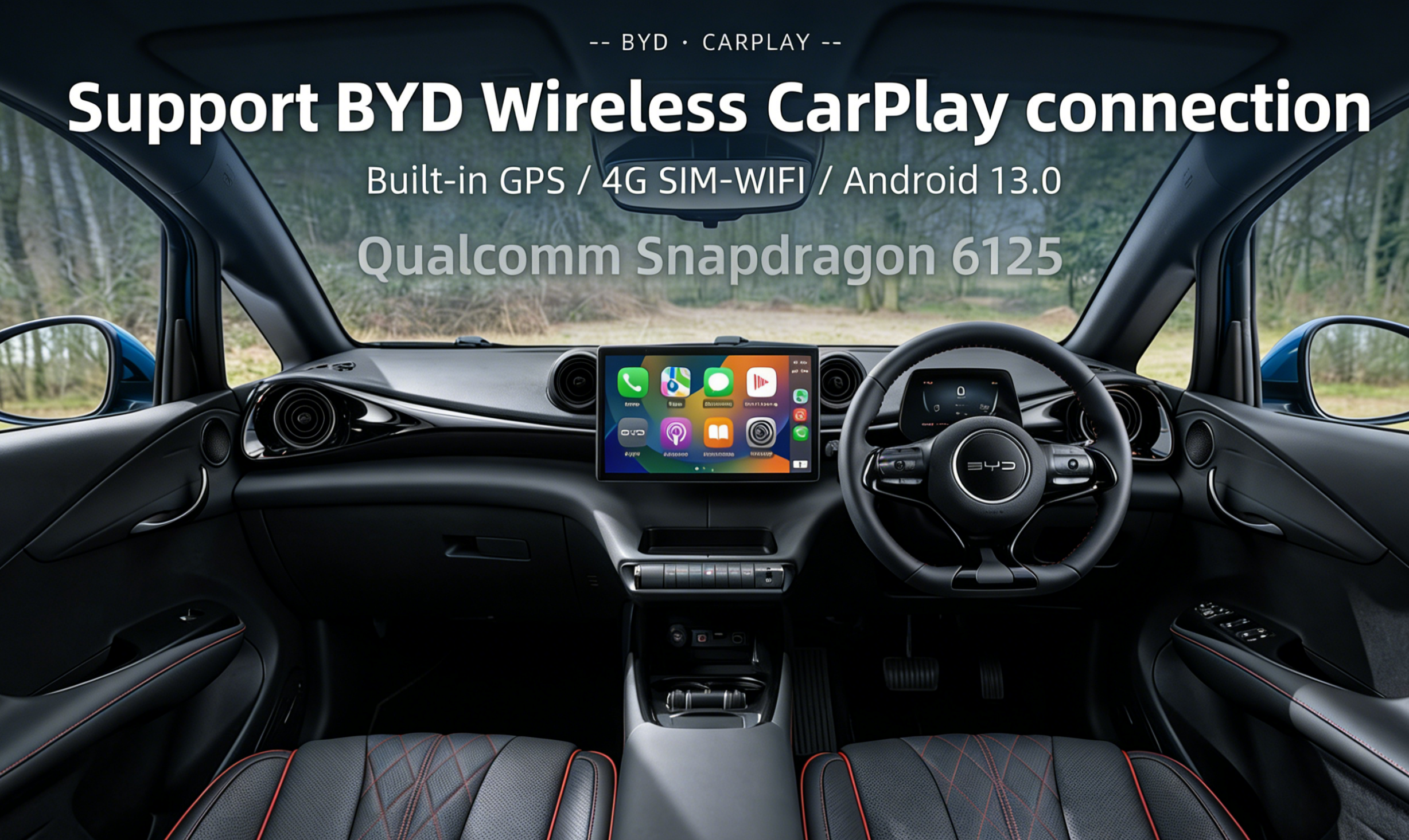 Optimized for BYD Dolphin models equipped with factory wireless Apple CarPlay.